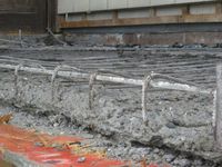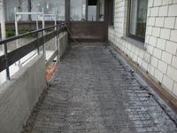 Ein Balkon in der Größe von 2 x 8 Meter war durch starken Witterungseinfluss 10cm tief beschädigt. Zuerst wurde die Unterseite mit Schalltafeln und Sprieße gestützt - anschließend die Hausfassade mit Schalltafeln verkleidet. Dies mußte sehr schonend durchgeführt werden, damit die bestehende Baustruktur erhalten bleibt. Zum Schluß wurde das Ganze neu betroniert.